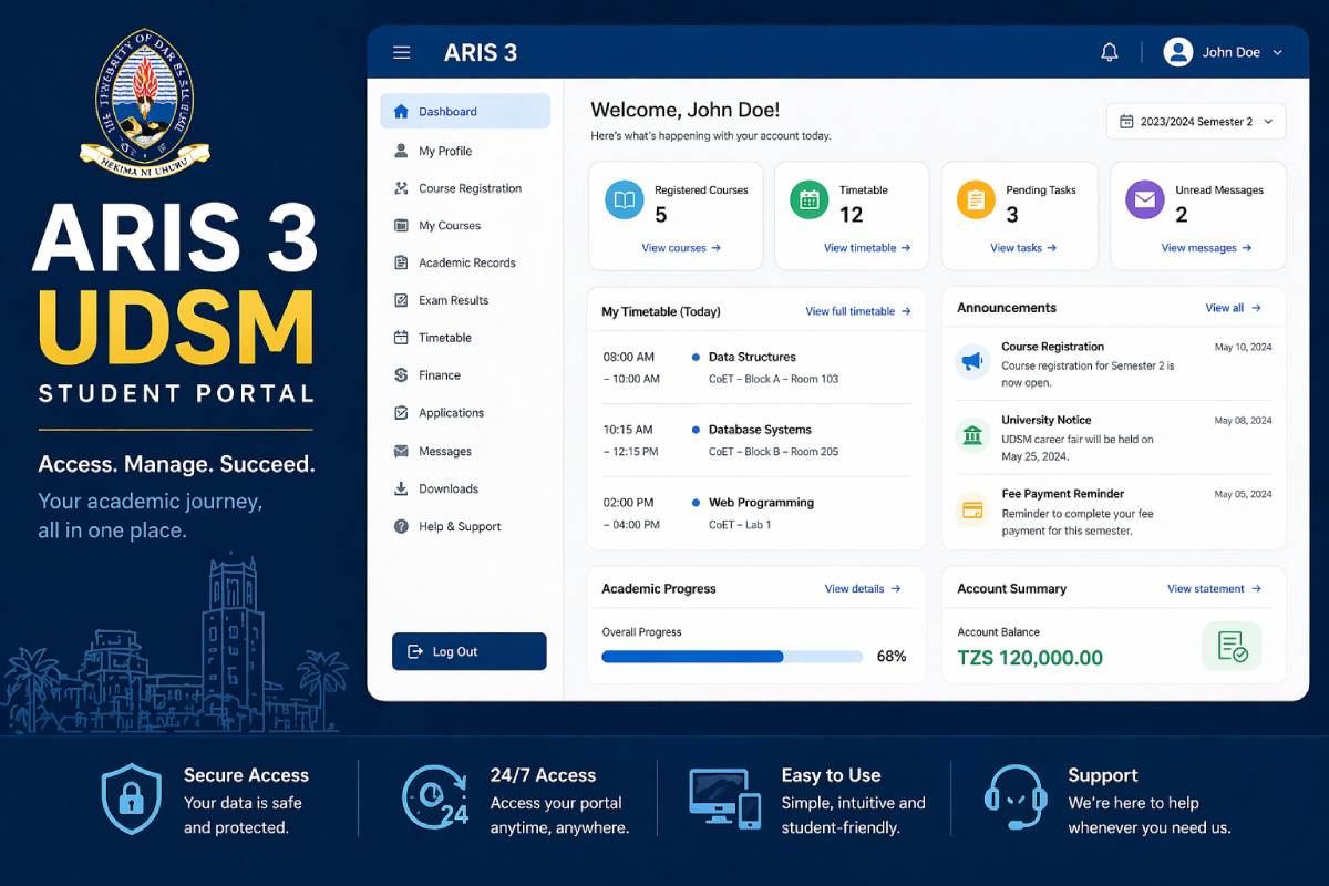 ARIS 3 UDSM is the third-generation version of the university’s Academic Registration Information System designed to support digital access to academic services through a single online platform.